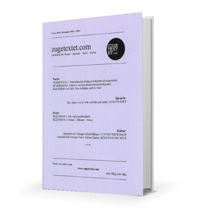 Beim Wettbewerb “Ein Dichterleben/dichter leben/ dicht erleben” hat es meine Kurzgeschichte “Ein Dichterleben 2018” in die Printausgabe 6/2018 des Literaturmagazins “zugetextet” geschafft.